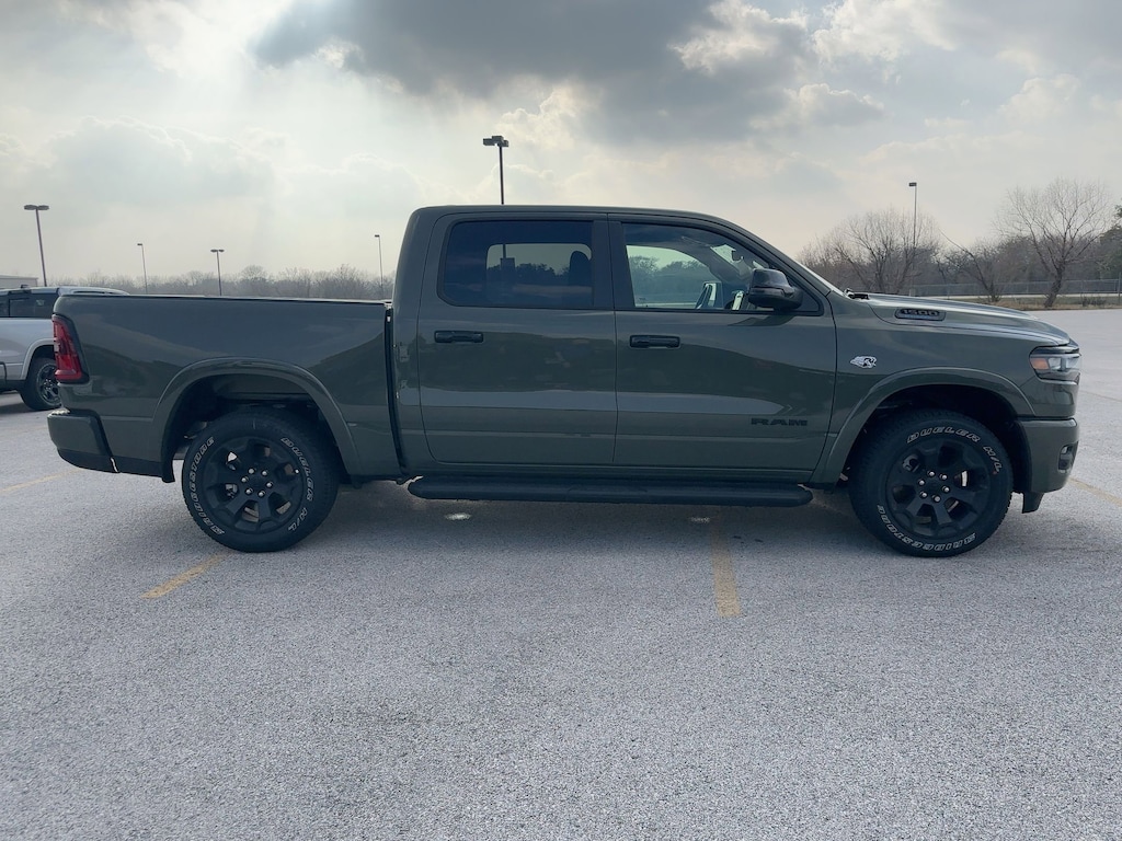QUICK ORDER PACKAGE 27R LONE STAR -inc: Engine: 5.7L V8 HEMI MDS VVT eTorque, Transmission: 8-Speed Automatic (8HP75), Lone Star Badge , NIGHT EDITION -inc: Tires: 275/55R20 OWL All Season, Bridgestone Brand Tires, Accent Color Premium Power Mirrors, Exterior Mirrors w/Supplemental Signals, Black Headlamp Bezels, Exterior Mirrors Courtesy Lamps, Grille Black Surround Black Mesh, Auto Power-Folding Mirrors, Wheels: 20" x 9.0" Aluminum Painted Clad, Auto Dim Exterior Driver Mirror, Black Exterior Truck Badging, Anti-Spin Differential Rear Axle, Accent Color Door Handles, Accent Color Tailgate Handle, Black Interior Accents, Dual Exhaust w/Black Tips, Body Color Front Bumper, Body Color Rear Bumper w/Step Pads, Black Tail Lamp Bezels, RAM Grille Badge - Black, Black Painted Exterior Mirrors Caps, MOPAR FRONT & REAR RUBBER FLOOR MATS, MOPAR BLACK TUBULAR SIDE STEPS, ENGINE: 5.7L V8 HEMI MDS VVT ETORQUE -inc: Active Noise Control System, Heavy Duty Engine Cooling, Passive Tuned Mass Damper, GVWR: 7,100 lbs, Dual Rear Exhaust w/Bright Tips, G/T Exhaust, 18" Aluminum Spare Wheel, CANYON LAKE, BIG HORN LEVEL 2 EQUIPMENT GROUP -inc: SiriusXM Radio Service, Power Adjustable Pedals, Leather Wrapped Steering Wheel, 12" Touchscreen Display, Glove Box Lamp, Auto Power-Folding Mirrors, 115V Auxiliary Rear Power Outlet, Media Hub w/2 Charge Only USBs, Heated Front Seats, Security Alarm, Black Premium Power Mirrors, Premium Overhead Console, 9 Amplified Speakers w/Subwoofer, Disassociated Touchscreen Display, Body Color Fender Flares, Remote Tailgate Release, 115V Auxiliary Power Outlet, LED Dome Lamp w/On/Off Switch, Universal Garage Door Opener, 2nd Row In Floor Storage Bins, Sun Visors w/Illuminated Vanity Mirrors, LED Footwell Lighting, Rear Window Defroster, Rear View Auto Dim Mirror, Rear Power Sliding Window, GPS Navigation, Overhead LED Lamps, Wheels: 20" x 9" Aluminum Chrome Clad (WRK), Tires: 275/55R20 OWL All Season, Bridgestone Brand Tires, Auto Dim Exterior Driver Mirror, SiriusXM w/360L, Connected Travel & Traffic Services, Heated Steering Wheel, Configurable Drive Mod, 33 GALLON FUEL TANK, 3.92 REAR AXLE RATIO, Voice Recorder.